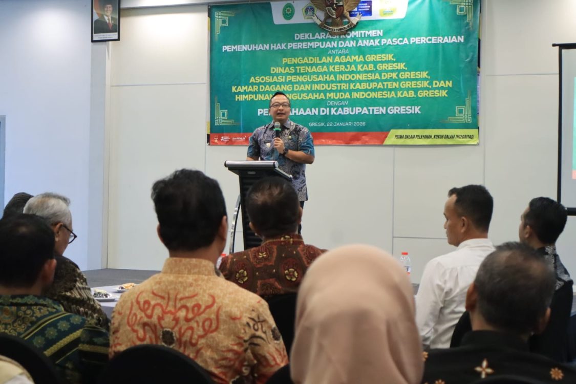 Headline.co.id, Gresik ~ Pemerintah Kabupaten Gresik mengambil langkah strategis untuk memperkuat perlindungan bagi perempuan dan anak setelah perceraian. Bersama Pengadilan Agama Gresik dan sektor usaha, Pemkab Gresik mendeklarasikan komitmen bersama untuk memenuhi hak-hak perempuan dan anak. Langkah ini bertujuan mencegah anak putus sekolah serta menjamin hak kesehatan, sosial, dan ketenagakerjaan bagi keluarga yang terdampak perceraian.