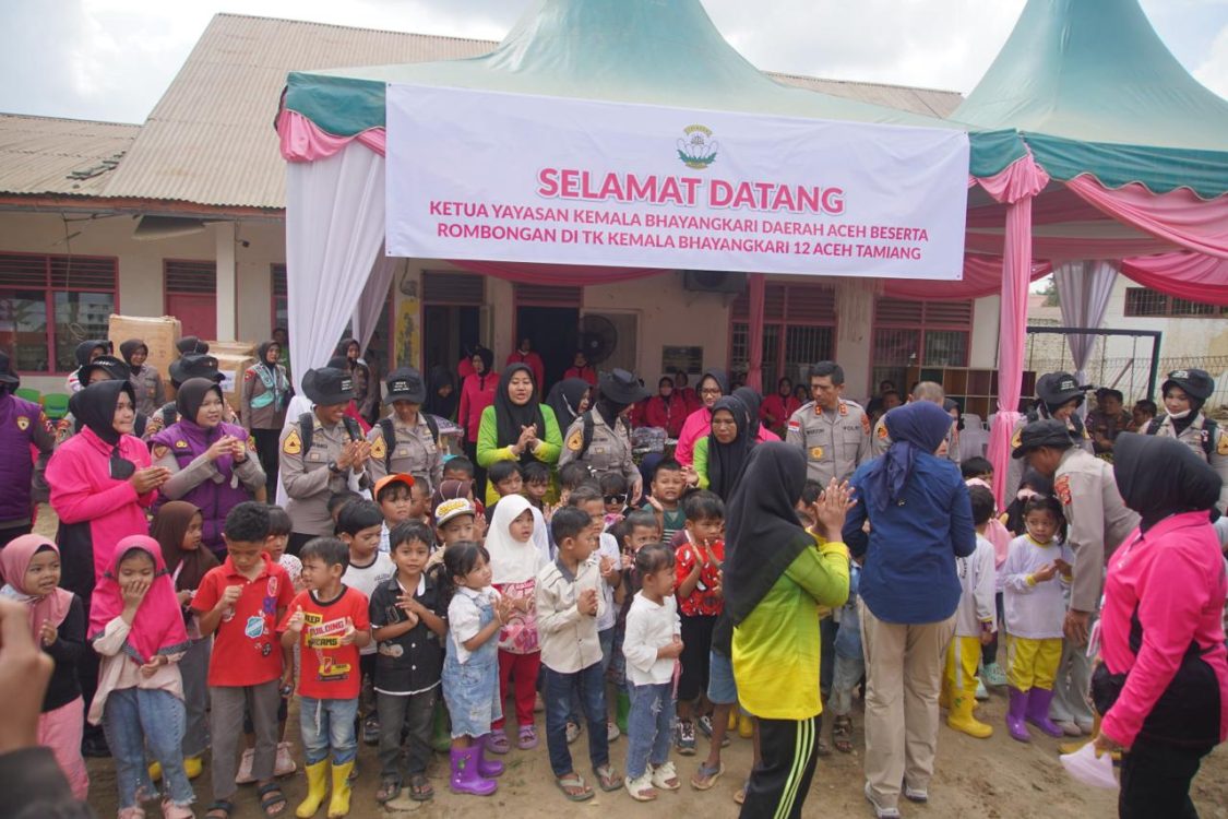 Selain para Taruni, kegiatan ini juga dihadiri oleh jajaran Bhayangkari Polda Aceh yang memberikan dukungan moral dan bantuan logistik. Kehadiran mereka menunjukkan kepedulian institusi terhadap pemulihan masyarakat, khususnya anak-anak, di wilayah yang terkena dampak bencana.