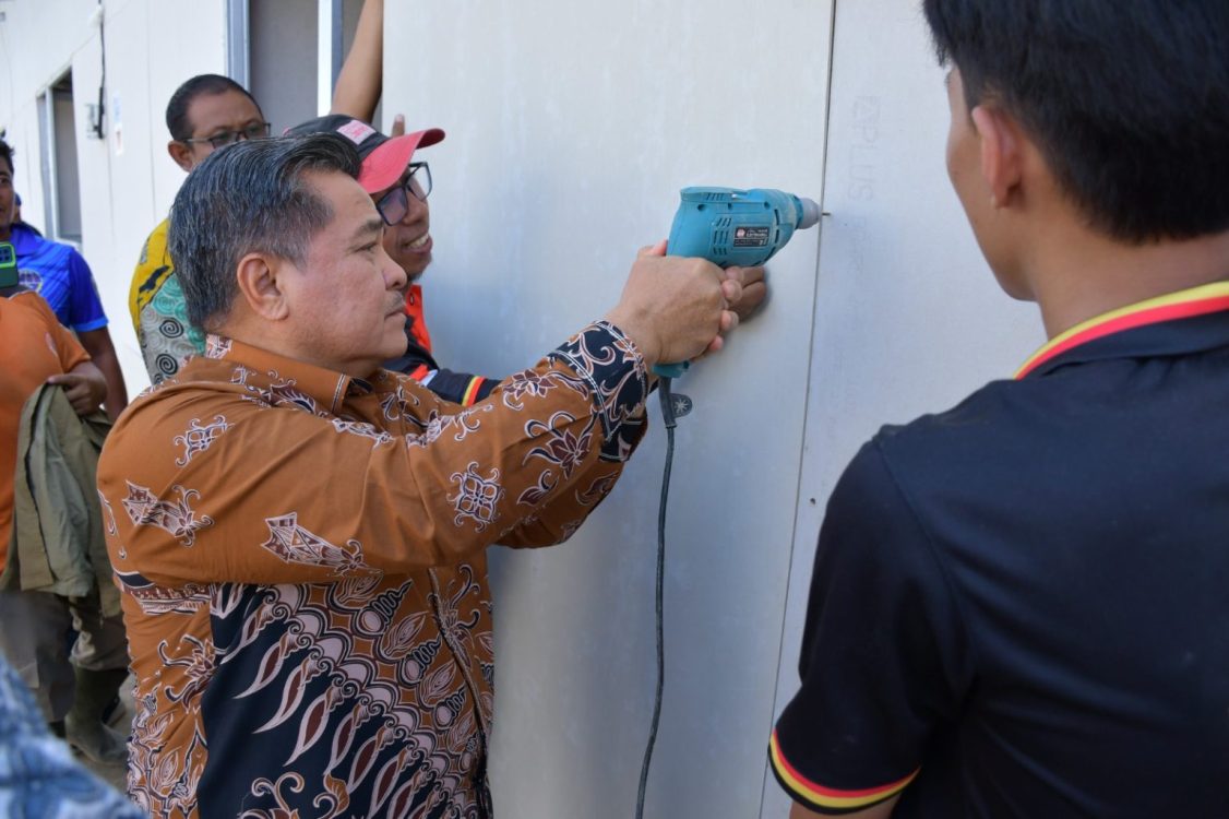 Menunjukkan komitmen terhadap kualitas pembangunan, Benni Warlis bahkan ikut mencoba langsung proses pemasangan dinding menggunakan peralatan kerja. Langkah ini dilakukan untuk memastikan metode pemasangan dilakukan secara tepat, kuat, dan aman bagi calon penghuni.