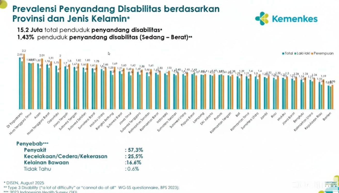 Data Tunggal Sosial dan Ekonomi Nasional (DTSEN) Agustus 2025 mencatat sekitar 15,2 juta jiwa penduduk Indonesia merupakan penyandang disabilitas. Sementara itu, Survei Kesehatan Indonesia (SKI) menunjukkan lebih dari 1 juta anak usia 5–17 tahun hidup dengan disabilitas, dengan proporsi terbesar pada disabilitas intelektual dan mental. “Selama ini perhatian publik sering tertuju pada disabilitas fisik dan sensorik. Padahal, angka tertinggi justru ada pada disabilitas intelektual dan mental,” kata Imran. Fakta ini menuntut pendekatan layanan yang lebih komprehensif, tidak hanya pada akses fisik, tetapi juga pada aspek komunikasi, psikososial, dan keberlanjutan pendampingan.