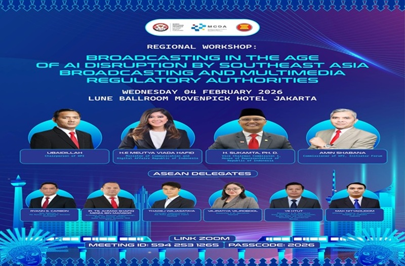 Workshop tersebut akan diselenggarakan di Jakarta pada 4–5 Februari 2026 dan merupakan hasil kerja sama KPI, Sekretariat ASEAN, serta Pusat Kerja Sama Internasional Kementerian Komunikasi dan Digital. Dalam kegiatan tersebut, lanjut Amin, KPI juga akan memaparkan hasil riset terkait pemanfaatan AI di sektor penyiaran dan multimedia di kawasan ASEAN.