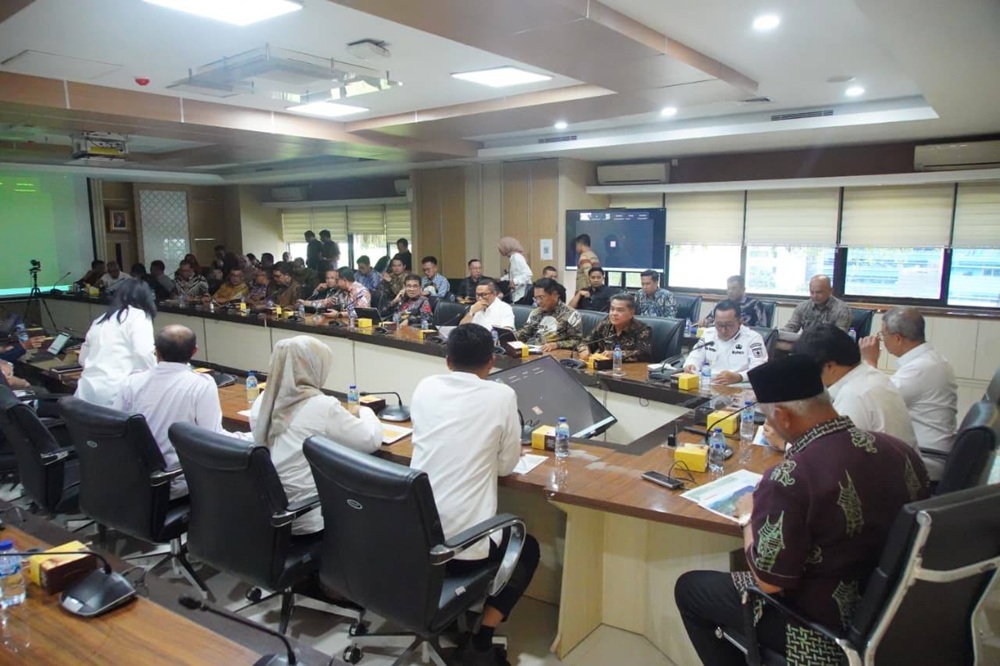 Dalam rapat tersebut, Bupati Tanah Datar didampingi oleh Asisten Ekonomi dan Pembangunan Ten Ferry serta Kepala Dinas PUPR Pertanahan Mustika Suarman. (Prokopim/rhn)