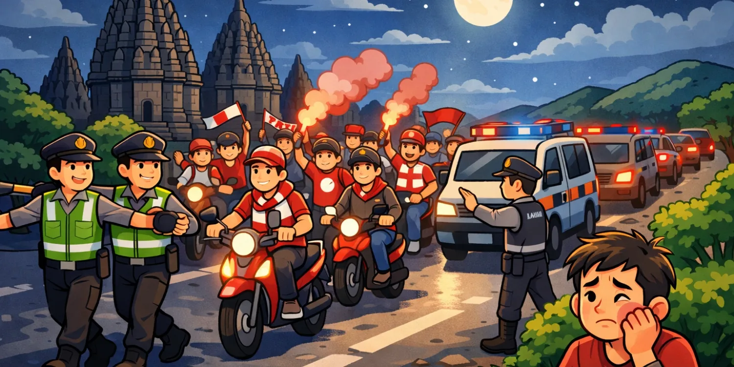 Headline.co.id, Klaten ~ Kepolisian Resor Klaten menegaskan tidak terjadi tawuran antarsuporter sepak bola di wilayah Prambanan, Kabupaten Klaten, pada Jumat (6/2/2026) malam. Klarifikasi ini disampaikan menyusul beredarnya informasi yang menyebut adanya bentrokan antarsuporter, padahal peristiwa yang terjadi merupakan gesekan antara rombongan suporter dan pengguna jalan lain. Aparat kepolisian memastikan pengamanan telah dilakukan secara ketat dan berlapis untuk menjaga ketertiban serta keselamatan masyarakat.