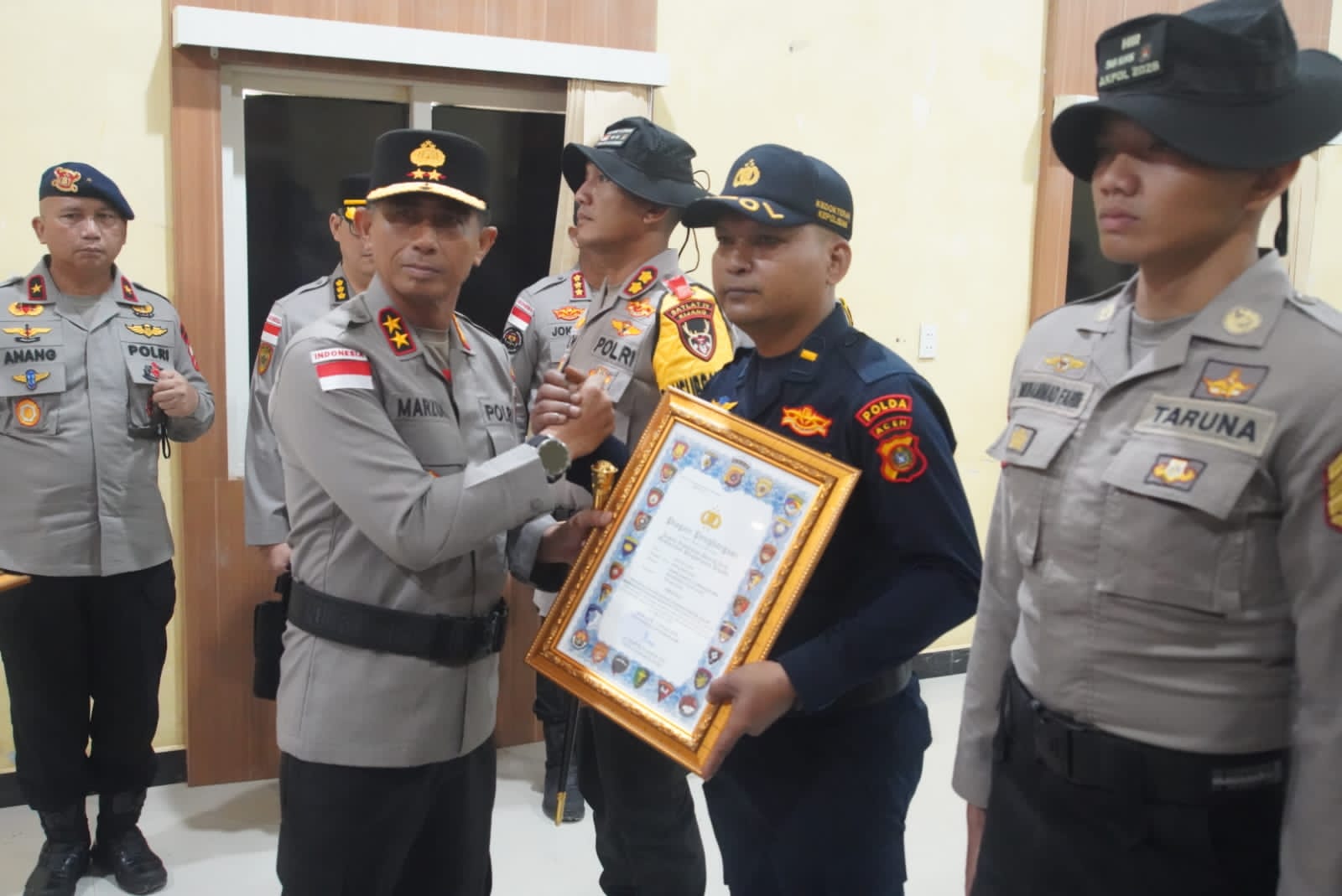Kapolda Aceh Anugerahkan Penghargaan kepada Danyon dan Taruna Akpol atas Aksi Kemanusiaan di Aceh Tamiang