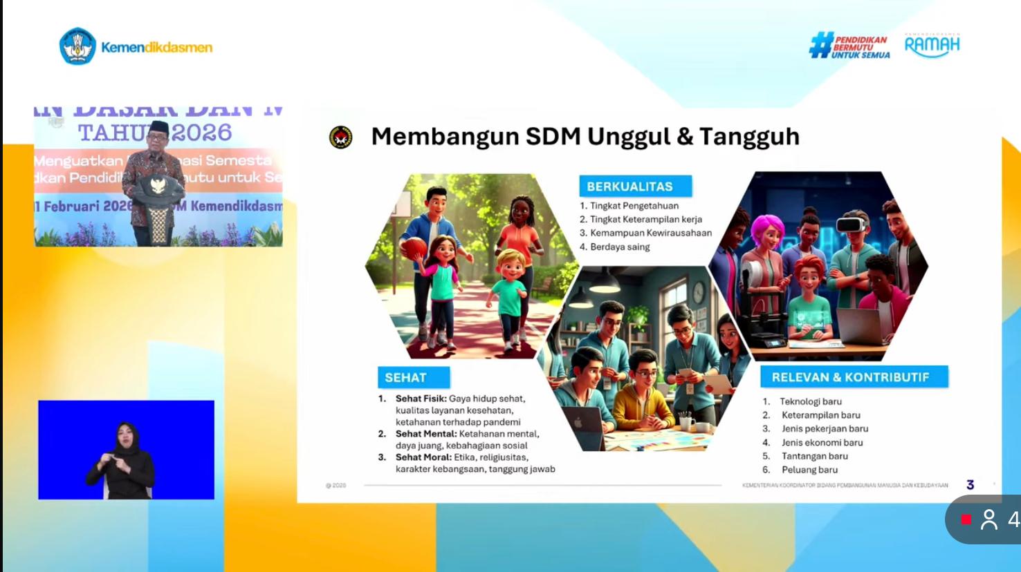 Headline.co.id, Jakarta ~ Menteri Koordinator Bidang Pembangunan Manusia dan Kebudayaan (Menko PMK), Pratikno, menekankan pentingnya pendidikan dalam mencetak sumber daya manusia (SDM) unggul. Hal ini disampaikan dalam Konsolidasi Nasional Pendidikan Dasar dan Menengah 2026, yang bertujuan memperkuat sinergi lintas sektor untuk meningkatkan mutu pendidikan. Acara ini berlangsung secara daring dan luring pada Senin (9/2/2026).