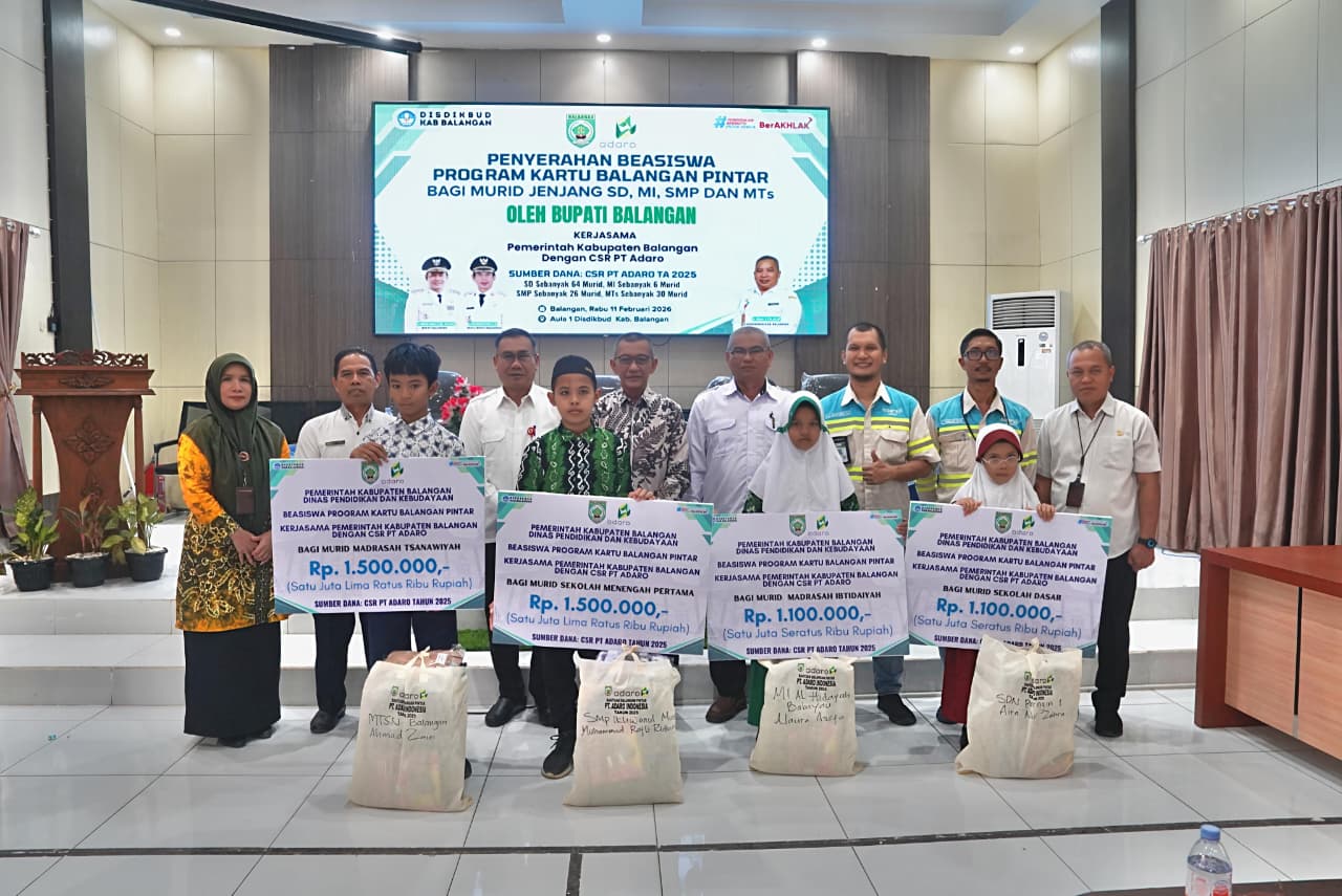 Headline.co.id, Balangan ~ Sebanyak 126 siswa dari jenjang SD/MI dan SMP/MTs di Kabupaten Balangan menerima beasiswa melalui Program Kartu Balangan Pintar. Beasiswa ini didanai oleh CSR PT Adaro Indonesia untuk tahun 2025. Penyerahan bantuan berupa perlengkapan sekolah dilaksanakan di Aula I Dinas Pendidikan dan Kebudayaan Kabupaten Balangan, Paringin Selatan, pada Rabu, 11 Februari 2026.