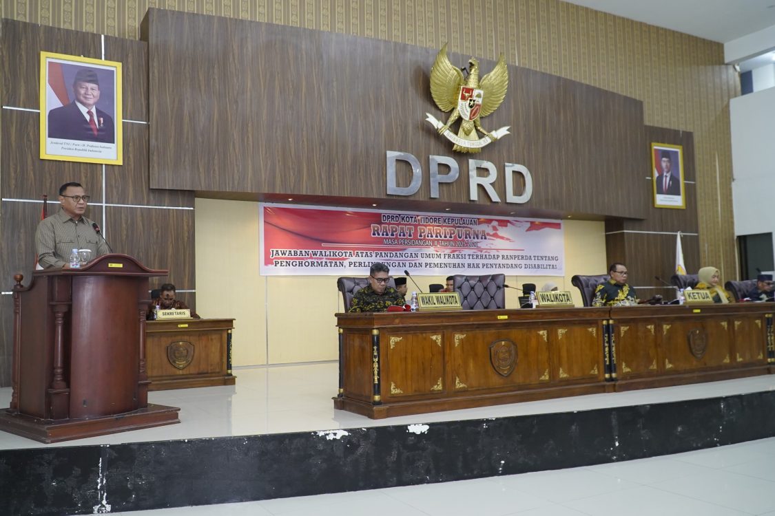 Headline.co.id, Wali Kota Tidore Kepulauan ~ Muhammad Sinen, menekankan pentingnya implementasi nyata dari Rancangan Peraturan Daerah (Ranperda) tentang Penghormatan, Perlindungan, dan Pemenuhan Hak Penyandang Disabilitas. Pernyataan ini disampaikan dalam Pidato Jawaban Wali Kota atas Pandangan Umum Fraksi terkait Ranperda tersebut pada Rapat Paripurna Masa Persidangan II Tahun 2025–2026 di Ruang Paripurna DPRD Kota Tidore Kepulauan, Rabu (11/2/2026).