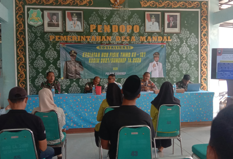Headline.co.id, Sumenep ~ Program TNI Manunggal Membangun Desa (TMMD) ke-127 Tahun Anggaran 2026 yang dilaksanakan oleh Kodim 0827/Sumenep terus berupaya memperkuat keamanan dan ketertiban masyarakat di Desa Mandala, Kecamatan Rubaru, Kabupaten Sumenep. Selain fokus pada pembangunan fisik, program ini juga mengedepankan edukasi hukum dan keamanan bagi warga desa melalui penyuluhan kamtibmas yang digelar pada Minggu (15/2/2026).
