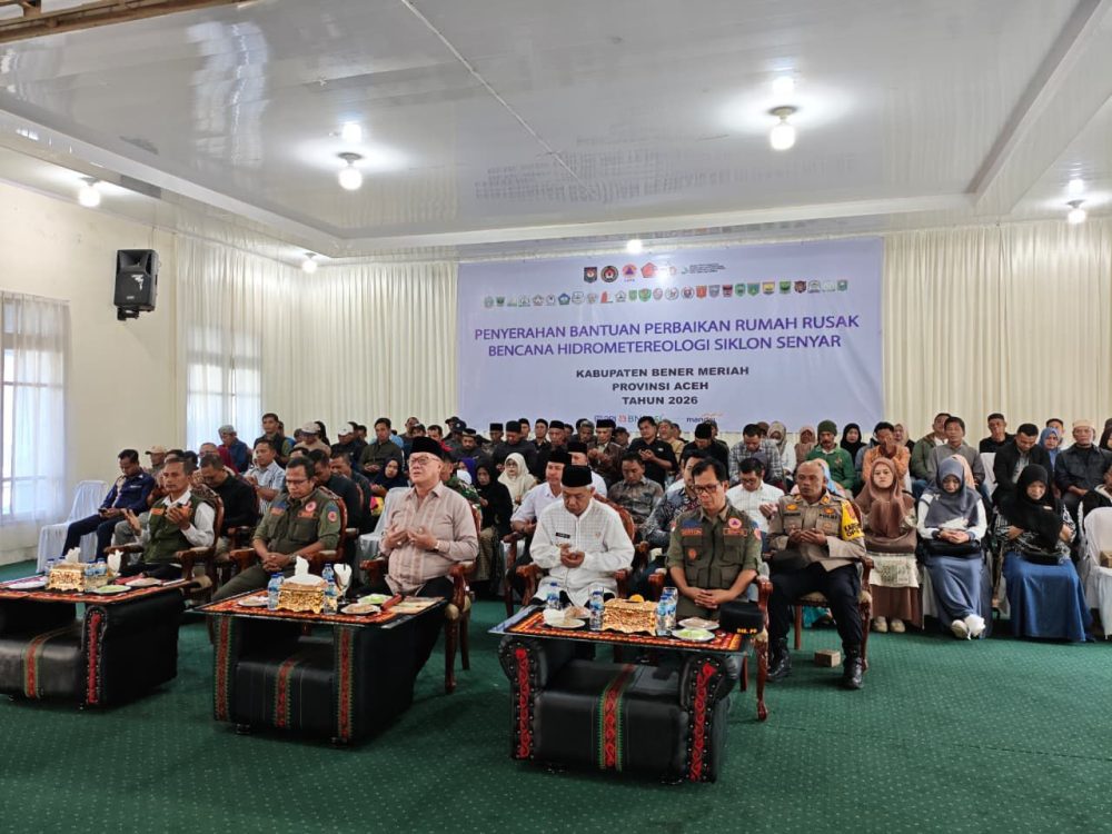 Headline.co.id, Bener Meriah ~ Pemerintah Kabupaten Bener Meriah telah menyalurkan bantuan perbaikan rumah bagi warga yang terdampak bencana hidrometeorologi. Penyerahan bantuan ini berlangsung di Aula Pendopo Bupati pada Jumat, 13 Februari 2026. Bantuan tersebut ditujukan untuk rumah yang mengalami kerusakan ringan dan sedang, sebagai bagian dari upaya percepatan pemulihan pascabencana.