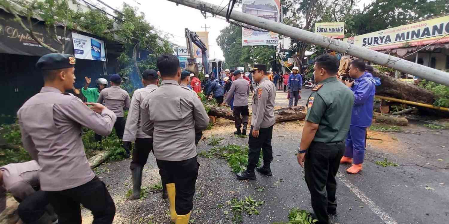 Iptu Rita Hidayanto menegaskan bahwa penanganan dilakukan dengan menggunakan alat berat guna mempercepat proses pembersihan batang pohon dari badan jalan dan area rumah warga.