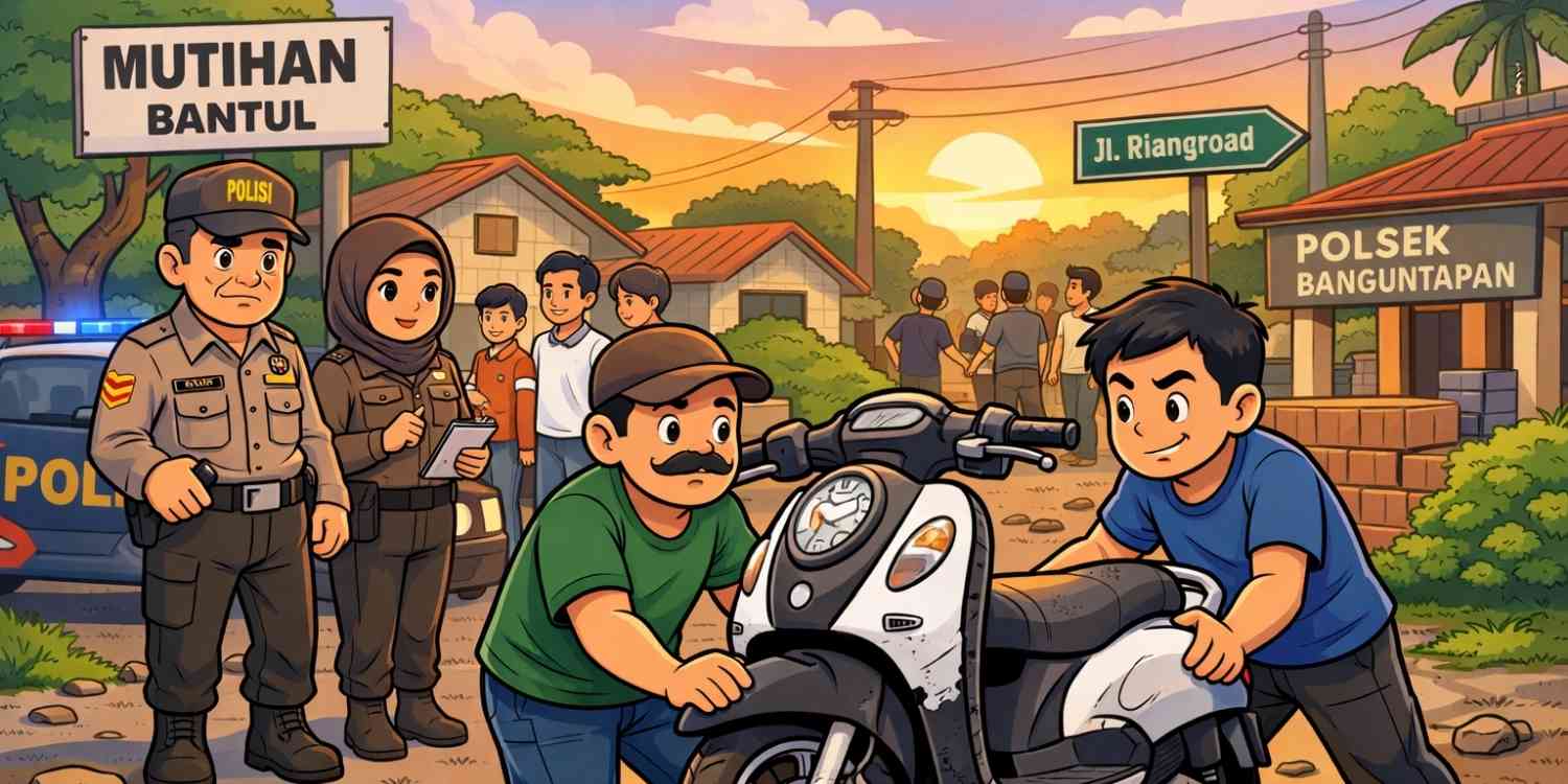 Data kejadian disampaikan Kasi Humas Polres Bantul, Iptu Rita Hidayanto, kepada Headline.co.id. Ia menjelaskan, informasi awal diterima sekitar pukul 06.00 WIB dari Bhabinkamtibmas Wirokerten Aiptu Indra terkait warga Mutihan yang mengamankan sepeda motor Honda Scoopy warna putih hitam.