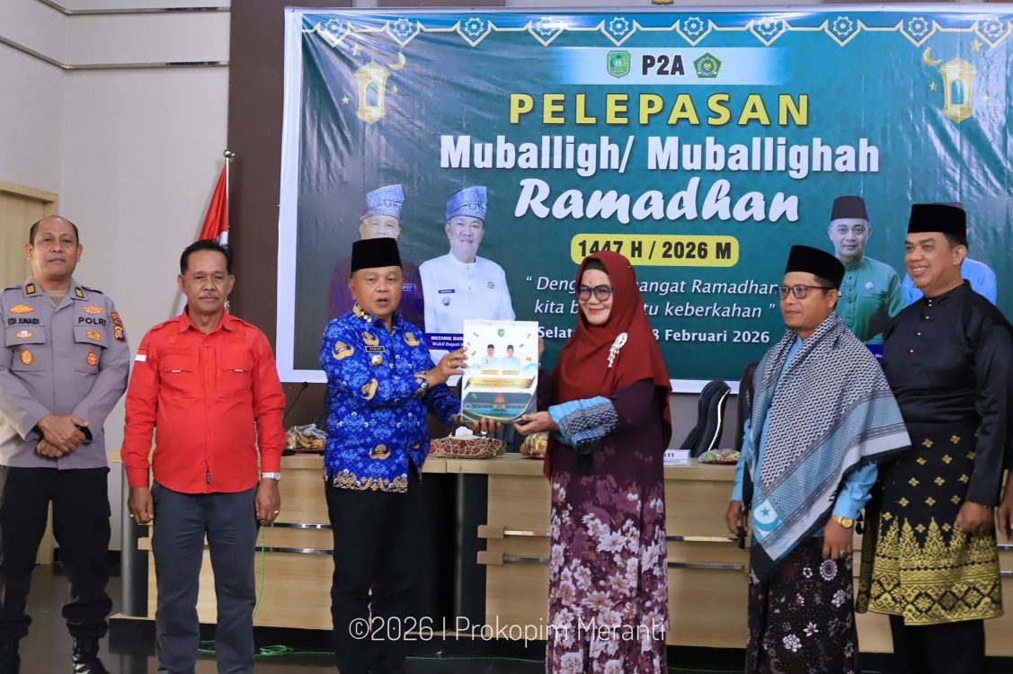 Headline.co.id, Selatpanjang ~ Bupati Kepulauan Meranti, Asmar, secara resmi melepas 75 mubalig dan mubaligah untuk bertugas selama Ramadan 1447 Hijriah/2026. Acara pelepasan ini berlangsung di Aula Kantor Bupati Kabupaten Kepulauan Meranti pada Rabu (18/2/2026). Para dai diharapkan tidak hanya menyampaikan dakwah keagamaan, tetapi juga berperan dalam menyosialisasikan program pembangunan daerah kepada masyarakat.