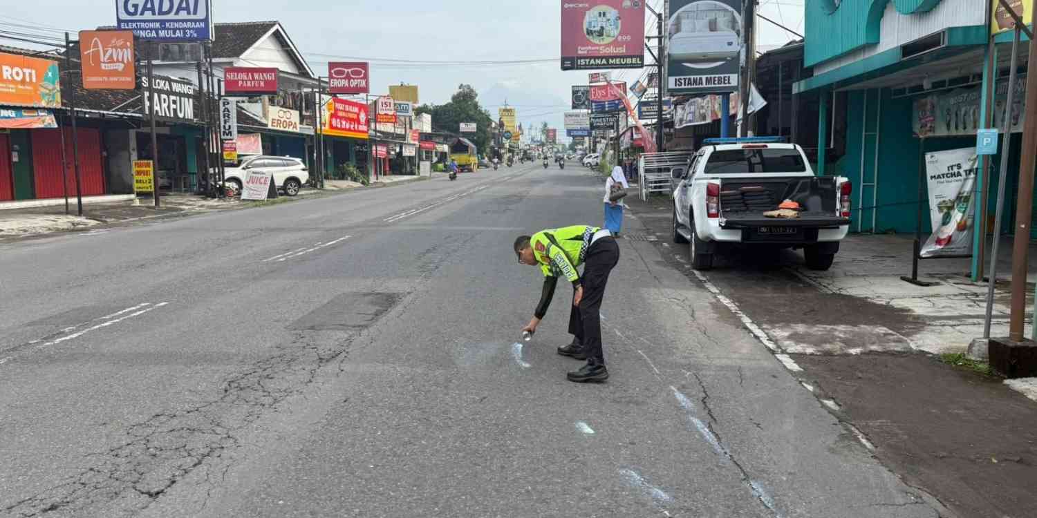 Headline.co.id, Bantul ~ Kecelakaan lalu lintas yang melibatkan tiga sepeda motor terjadi di Jalan Tajem, tepatnya di depan sebuah gerai minuman wilayah Padukuhan Mustukorejo, Maguwoharjo, Depok, Sleman, Sabtu, 21 Februari 2026 sekitar pukul 06.30 WIB. Peristiwa tersebut mengakibatkan seorang perempuan berusia 65 tahun meninggal dunia di lokasi kejadian. Insiden ini melibatkan sepeda motor Honda Scoopy, Honda Vario, serta satu sepeda motor lain yang belum diketahui identitasnya dan masih dalam penyelidikan. Polisi menyebut kecelakaan dipicu jarak kendaraan yang terlalu dekat saat proses mendahului.
