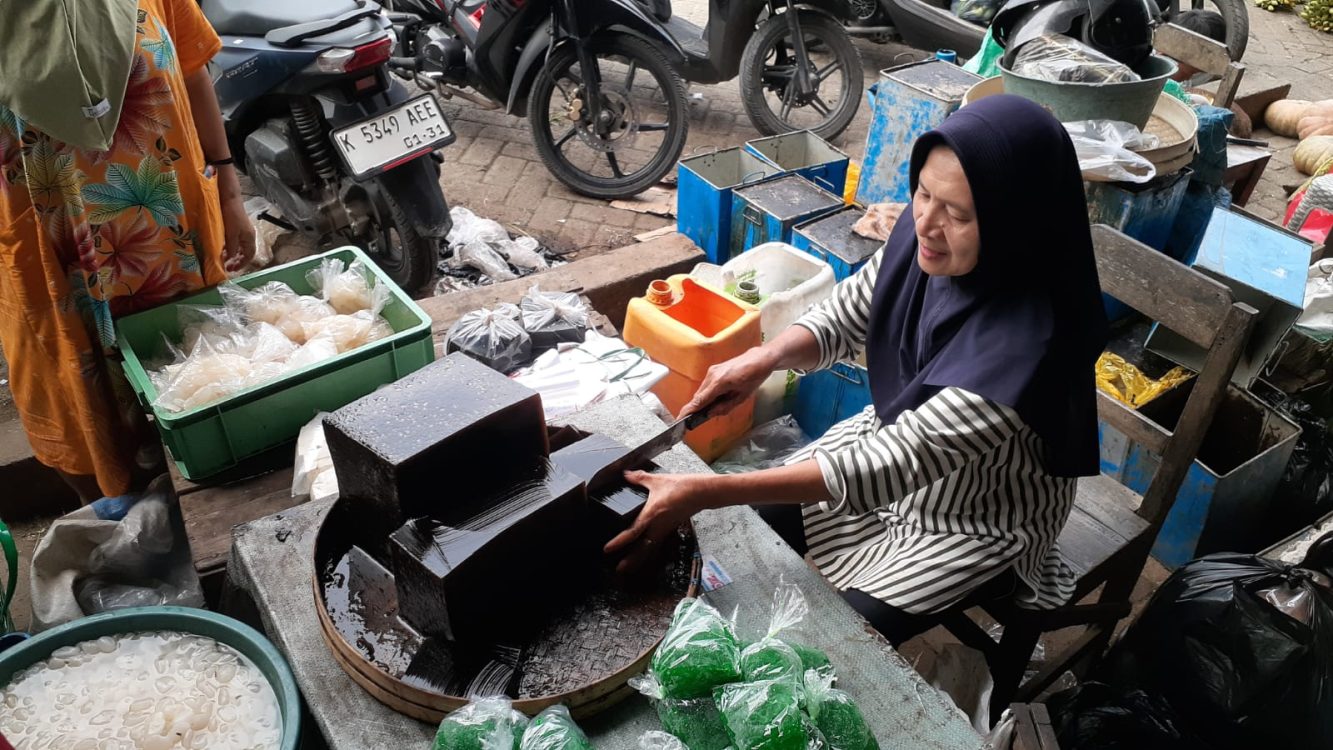 Pedagang Cincau dan Kolang-kaling di Pasar Sido Makmur Blora Ramai Pembeli