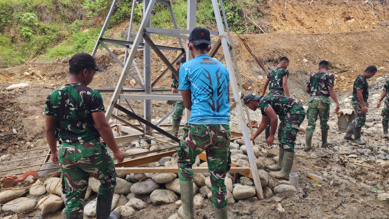 Hingga Minggu (22/2/2026), pembangunan kembali akses tersebut dilakukan melalui proyek jembatan gantung yang merupakan hasil kolaborasi tim ahli dari Vertical Rescue Indonesia dan prajurit Batalyon Infanteri Teritorial Pembangunan 836/Brahma Yodha (Yonif TP 836/BY). Dukungan material dari Badan Nasional Penanggulangan Bencana (BNPB) mempercepat pengerjaan di lapangan. Tim gabungan bekerja siang dan malam untuk memastikan jembatan dapat segera digunakan, mengingat perannya yang penting dalam memulihkan aktivitas ekonomi warga serta mengurangi jarak tempuh distribusi logistik dan kebutuhan pokok.