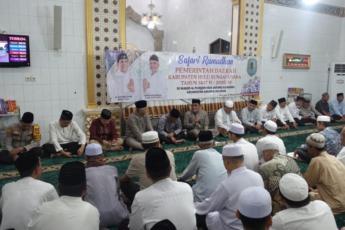 Headline.co.id, Amuntai ~ Bupati Hulu Sungai Utara (HSU), H. Sahrujani, mengajak seluruh masyarakat untuk mendoakan kemajuan dan kebangkitan daerah selama bulan Ramadan. Ajakan ini disampaikan dalam sambutannya saat pembukaan Safari Ramadan 1447 Hijriah/2026 Masehi di Masjid Al Furqan, Desa Jarang Kuantan, Kecamatan Amuntai Selatan, pada Minggu (1/3/2026).