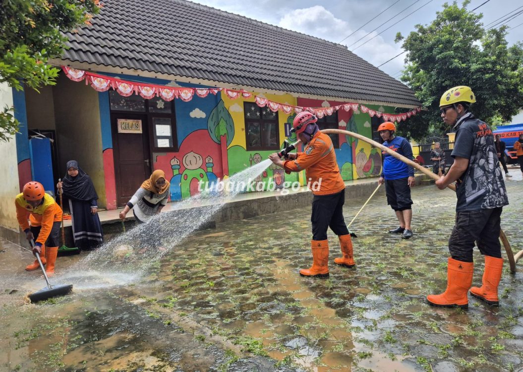 Selain rumah warga, sejumlah fasilitas umum juga terdampak dan memerlukan pembersihan pascabanjir. Personel diterjunkan untuk melakukan pembersihan di MI Salafiyah, TK Salafiyah, SDN Sumurgung 1, SDN Ngrayung 1, serta SDN Genangharjo 2. Kalaksa BPBD Tuban memastikan proses pembersihan terus dilakukan agar aktivitas masyarakat dan kegiatan belajar mengajar segera kembali normal.