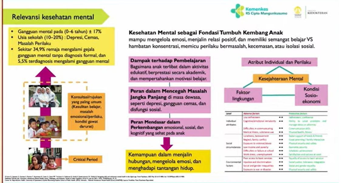 Nunung menekankan bahwa masalah kesehatan mental anak dan remaja tidak bisa lagi dianggap sebagai isu pinggiran. Ia menganggap ketahanan psikososial sebagai syarat penting dalam membangun generasi penerus yang tangguh, adaptif, dan siap melanjutkan pembangunan bangsa. “Ketika kita berbicara pembangunan SDM, aspek kesehatan mental harus menjadi perhatian serius. Anak dan remaja adalah generasi yang akan melanjutkan peradaban bangsa,” ujarnya.