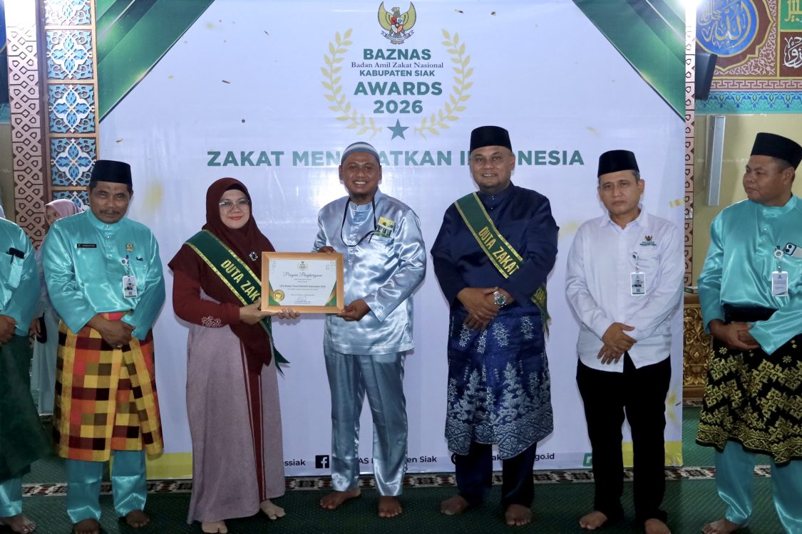 Headline.co.id, Bupati Siak ~ Afni Zulkifli, bersama Wakil Bupati Syamsurizal, telah dikukuhkan sebagai Duta Zakat oleh Badan Amil Zakat Nasional (Baznas) Kabupaten Siak. Pengukuhan ini berlangsung dalam rangka Gerakan Masyarakat (GEMAR) Siak Berzakat ke-XIII yang diadakan di Masjid Sultan Syarif Hasyim Islamic Center Siak pada Jumat, 6 Maret 2026. Acara ini juga dirangkaikan dengan pendistribusian Zakat Pola Konsumtif Baznas Kabupaten Siak 2026 serta Gerakan Siak Berwakaf.