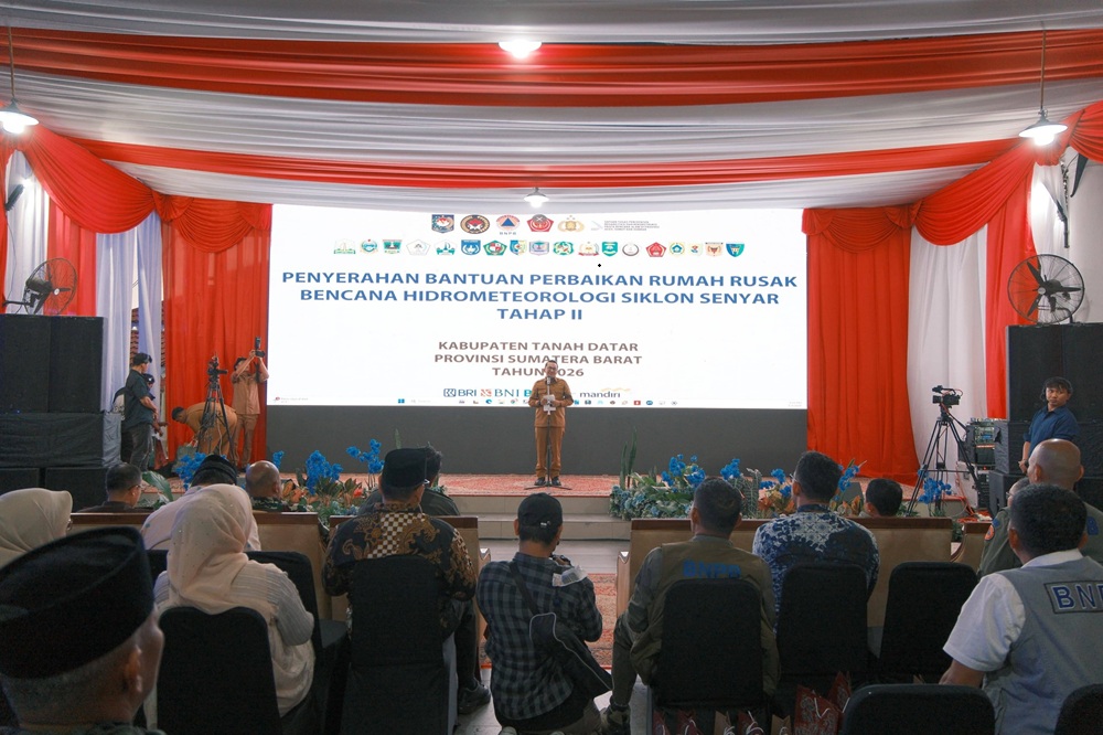 Headline.co.id, Pemerintah Kabupaten Tanah Datar ~ Sumatra Barat, bersama Badan Nasional Penanggulangan Bencana (BNPB) menyalurkan bantuan dana stimulan untuk perbaikan rumah rusak akibat bencana hidrometeorologi. Bantuan ini diberikan kepada 126 kepala keluarga (KK) di Tanah Datar dengan total nilai mencapai Rp2,865 miliar. Penyerahan bantuan tahap II ini dilaksanakan di Indojolito Batusangkar pada Selasa, 4 Februari 2026.