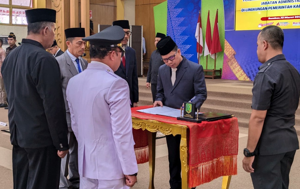 Headline.co.id, Sambas ~ Bupati Sambas, Satono, melantik sejumlah pejabat baru di lingkungan Pemerintah Kabupaten Sambas, Kalimantan Barat, pada Jumat (13/3/2026). Acara yang berlangsung di Aula Utama Kantor Bupati Sambas ini melibatkan pelantikan Hidayat sebagai Direktur Perusahaan Daerah Air Minum (PDAM) Tirta Muare Ulakan, serta Taufiq Kurrakhman dan Gusanto masing-masing sebagai Camat dan Sekretaris Camat Paloh.