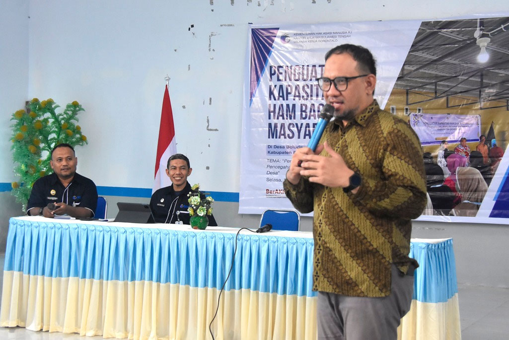 Headline.co.id, Bone Bolango ~ Kantor Wilayah Kementerian Hak Asasi Manusia (KemenHAM) Sulawesi Tengah melalui Wilayah Kerja Gorontalo mengadakan kegiatan Penguatan Kapasitas Hak Asasi Manusia (HAM) di Desa Boludawa, Kecamatan Suwawa, Kabupaten Bone Bolango, pada Selasa (17/3/2026). Acara ini bertujuan untuk menanamkan nilai-nilai kebebasan yang bertanggung jawab dan meningkatkan pemahaman masyarakat mengenai hak dasar sebagai wujud nyata HAM di tingkat desa.