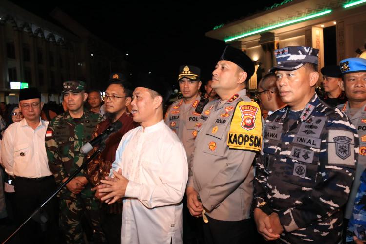 Headline.co.id, Pontianak ~ Menjelang Hari Raya Idulfitri 1447 H, Gubernur Kalimantan Barat, Ria Norsan, bersama jajaran Forkopimda Provinsi Kalimantan Barat melakukan pemantauan langsung terhadap situasi keamanan dan ketertiban masyarakat (Kamtibmas). Pemantauan ini dilakukan pada malam takbiran di Pos Pengamanan Idul Fitri yang terletak di halaman Masjid Raya Mujahidin, Jumat malam (20/3/2026). Tujuan dari kegiatan ini adalah untuk memastikan kondisi Kamtibmas tetap kondusif, serta menjamin kelancaran arus mudik dan kekhusyukan masyarakat dalam merayakan malam kemenangan.