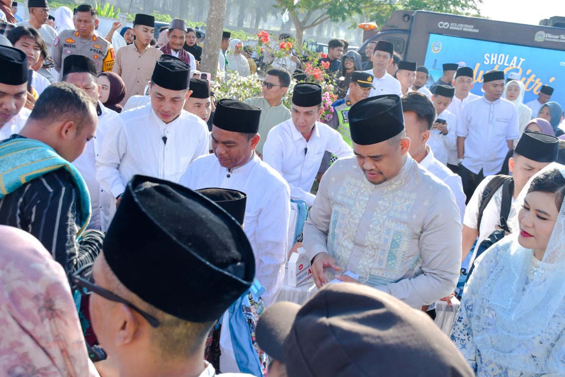 Headline.co.id, Serdang Bedagai ~ Ribuan umat Muslim memadati Masjid Agung di Kabupaten Serdang Bedagai (Sergai), Kecamatan Sei Rampah, untuk melaksanakan Salat Idulfitri 1447 Hijriah pada Sabtu (21/3/2026). Acara ini semakin istimewa dengan kehadiran Gubernur Sumatera Utara, Bobby Nasution, yang turut bergabung bersama masyarakat setempat. Bupati Sergai, Darma Wijaya, dan Wakil Bupati Adlin Tambunan menyambut kedatangan Gubernur dan rombongannya. Ketiga pemimpin daerah tersebut terlihat khusyuk di saf terdepan, berbaur dengan warga yang telah memenuhi area masjid hingga ke pelataran sejak pagi.
