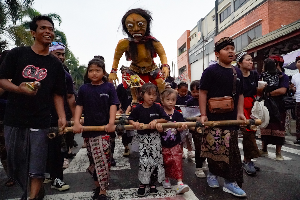Di wilayah kaki pegunungan ini, warga dari berbagai latar belakang agama bergotong royong menyusun ogoh-ogoh sebagai bagian dari perayaan Nyepi. Mereka bersama-sama menyusun bambu, mengikat rangka, dan memasang bahan hiasan dengan teliti. Proses ini tidak hanya menjadi bagian dari ritual keagamaan, tetapi juga menciptakan ruang interaksi sosial yang inklusif.