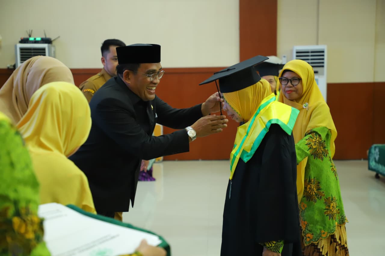 Prosesi wisuda diakhiri dengan penyerahan sertifikat secara simbolis oleh Bupati HSU bersama Ketua Umum PP ‘Aisyiyah kepada para wisudawan sebagai tanda kelulusan mereka dari program inklusi tersebut. (MC HSU/Wahyu/Jimmy/Dedi)‎‎‎‎‎‎