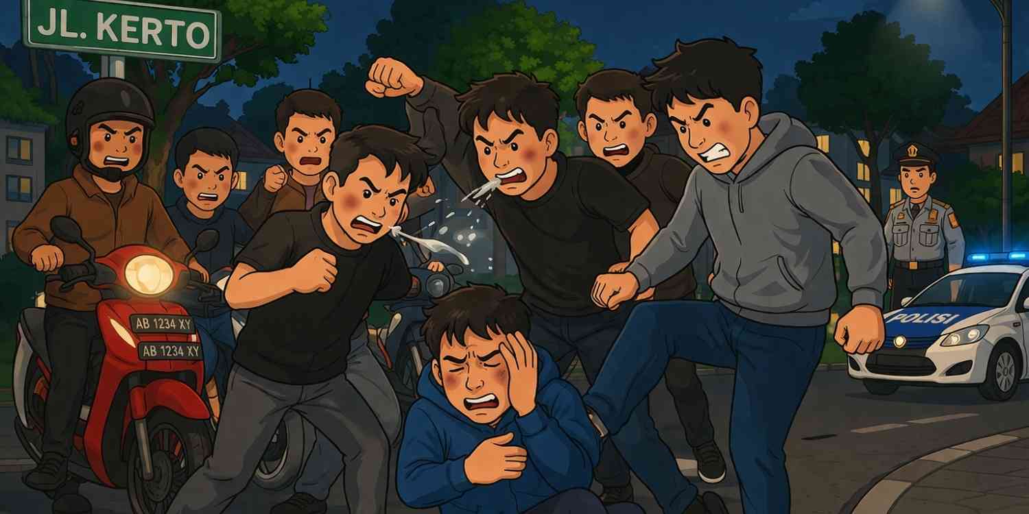 Situasi kemudian memanas ketika pelaku berbalik arah dan menghampiri korban, hingga terjadi adu mulut. Ketegangan meningkat setelah pelaku menghubungi rekan-rekannya. Tak lama kemudian, enam orang teman pelaku datang menggunakan tiga sepeda motor secara berboncengan.