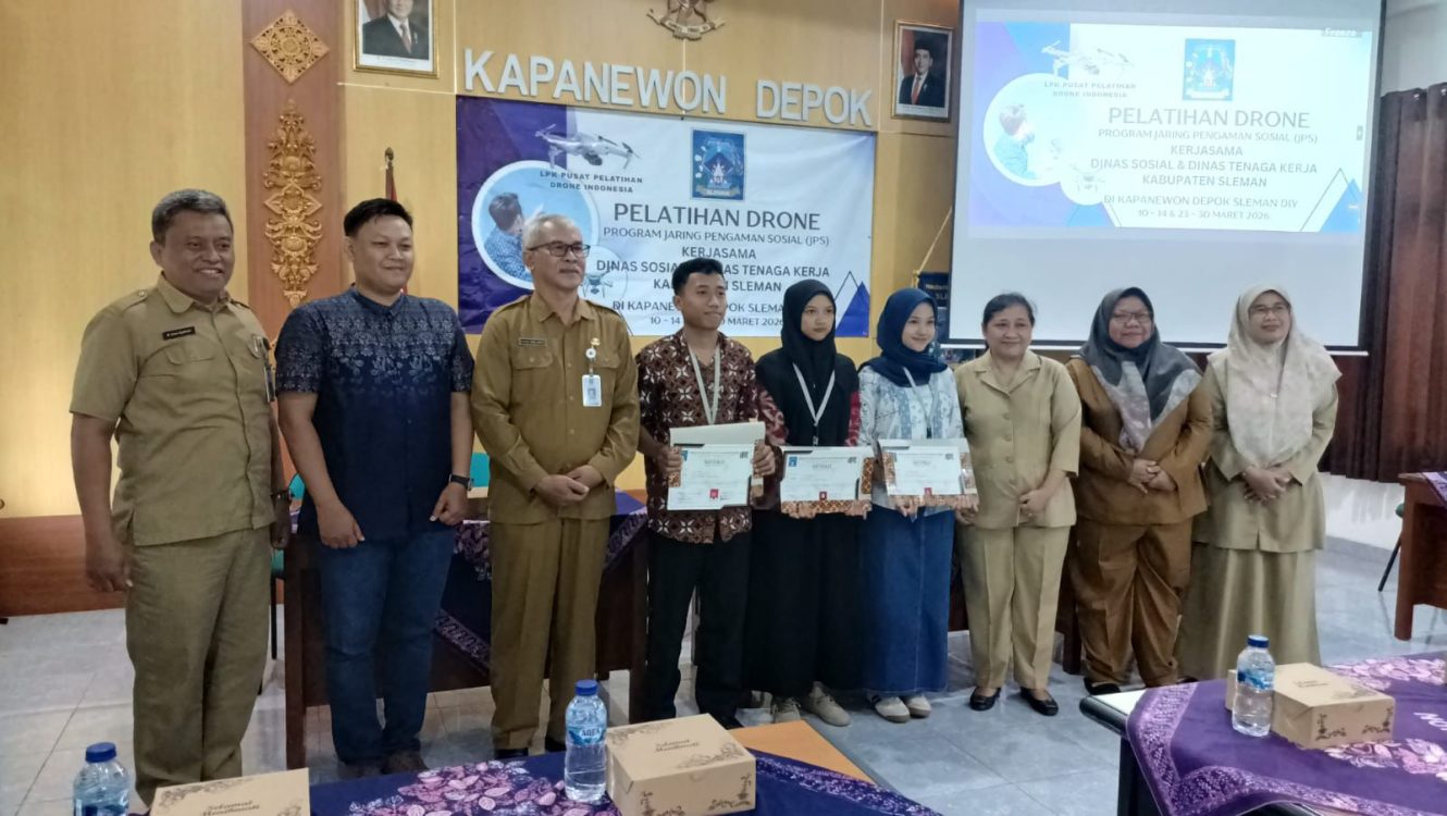 Headline.co.id, Batu ~ Pemerintah Kabupaten Sleman secara resmi menutup rangkaian Pelatihan Drone Aerial yang merupakan bagian dari Program Jaring Pengaman Sosial (JPS) tahun 2026. Acara penutupan ini merupakan hasil kolaborasi Dinas Tenaga Kerja, Dinas Sosial Kabupaten Sleman, dan LPK Pusat Pelatihan Drone Training Center, yang diadakan di Sasana Anglocita Tama, Kecamatan Depok, Sleman, pada Senin (30/3/2026).