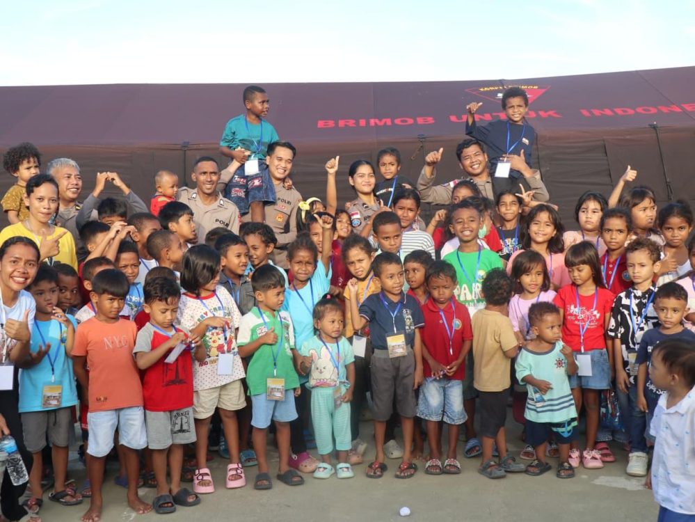 Sebagai bentuk kepedulian, personel Satgas membagikan bingkisan kepada anak-anak, yang menjadi simbol perhatian dan upaya mempererat hubungan emosional Satgas dan generasi muda di wilayah tersebut. Raut wajah bahagia dan senyum ceria anak-anak menjadi gambaran keberhasilan pendekatan humanis yang dilakukan.