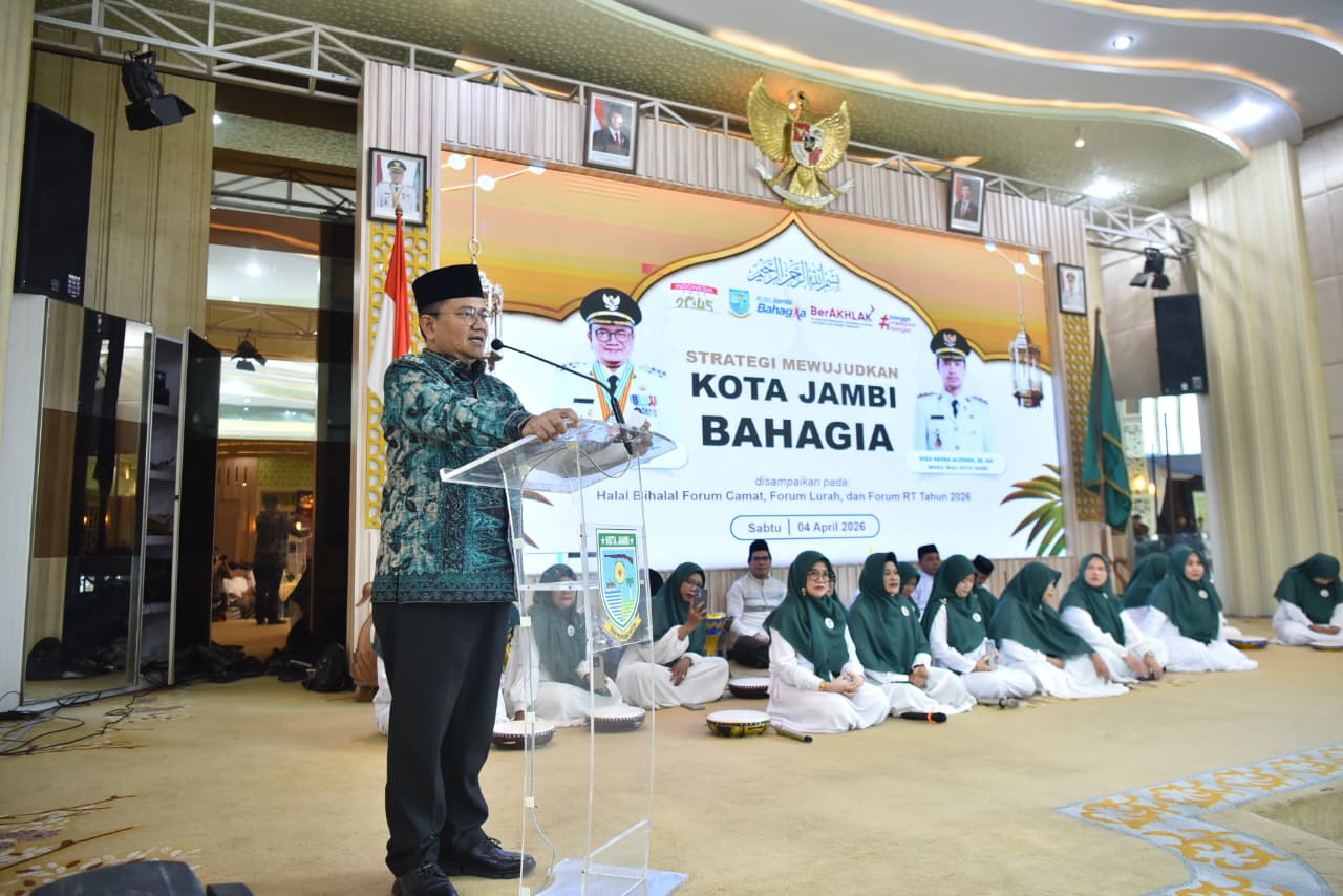 Headline.co.id, Jambi ~ Pemerintah Kota Jambi memanfaatkan momen halalbihalal Forum Komunikasi Rukun Tetangga (FKRT) untuk memperkuat peran Rukun Tetangga (RT) dalam pelayanan dan pembangunan berbasis masyarakat. Acara yang berlangsung di Aula Griya Mayang, Rumah Dinas Wali Kota Jambi, pada Sabtu (4/4/2026) ini tidak hanya menjadi ajang silaturahmi pasca-Ramadan, tetapi juga forum konsolidasi untuk mempercepat implementasi program strategis daerah, khususnya “Kampung Bahagia”.
