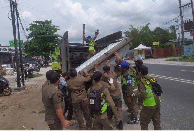 Satpol PP Palangka Raya Tertibkan Reklame Tanpa Izin