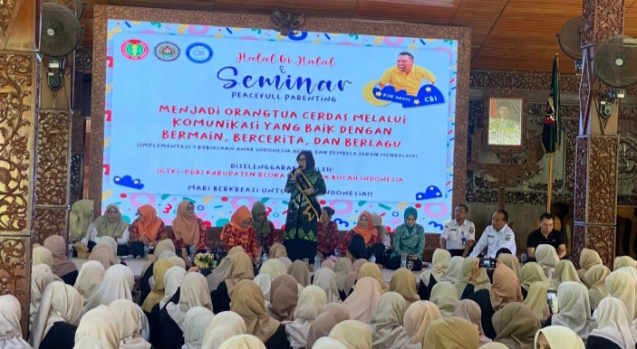 Headline.co.id, Blora ~ Bunda Pendidikan Anak Usia Dini (PAUD) Kabupaten Blora, Ainia Shalichah, menekankan pentingnya peran guru PAUD sebagai fondasi utama dalam pembentukan karakter anak sejak usia dini di era digital. Pernyataan ini disampaikan dalam pelatihan dan seminar parenting yang ditujukan khusus bagi para pengajar PAUD dan TK se-Kabupaten Blora. Acara tersebut berlangsung di Pendopo Rumah Dinas Bupati Blora pada Rabu, 8 April 2026.