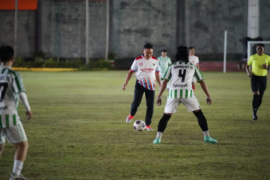 Headline.co.id, Pontianak ~ Pekan Olahraga Pelajar Daerah (POPDA) Kota Pontianak 2026 resmi dibuka dengan pertandingan persahabatan PS Pemkot, Journalist FC, dan Askot PSSI Kota Pontianak di Stadion Keboen Sajoek pada Selasa (14/4/2026) malam. Dalam ajang mini cup tersebut, duet penyerang Wali Kota Edi Rusdi Kamtono dan Wakil Wali Kota Bahasan berhasil mencetak empat gol, menjadikan PS Pemkot sebagai juara.