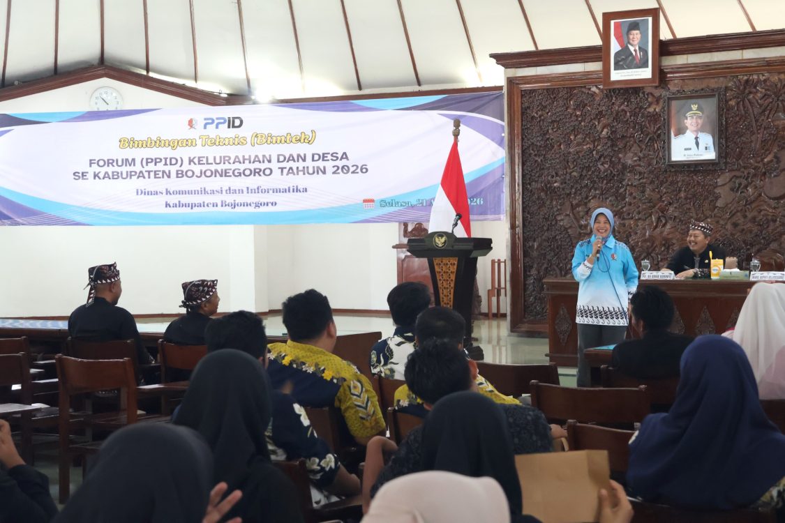 Headline.co.id, Bojonegoro ~ Pemerintah Kabupaten Bojonegoro melalui Dinas Komunikasi dan Informatika (Kominfo) mengadakan Bimbingan Teknis (Bimtek) untuk Forum Pejabat Pengelola Informasi dan Dokumentasi (PPID) di Pendopo Malowopati, Bojonegoro, Jawa Timur, pada Selasa (21/4/2026). Acara ini ditujukan kepada para sekretaris desa dan kelurahan yang berperan sebagai PPID, dengan tujuan memperkuat pelaksanaan keterbukaan informasi publik (KIP) hingga tingkat desa.