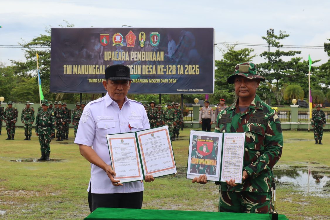 Headline.co.id, Kasongan ~ Program TNI Manunggal Membangun Desa (TMMD) Imbangan ke-128 Tahun 2026 di Kabupaten Katingan telah resmi dimulai. Acara pembukaan berlangsung di Lapangan Makodim 1019/Katingan pada Rabu (22/4/2026), dengan Sekretaris Daerah Kabupaten Katingan, Christian Rain, bertindak sebagai inspektur upacara. Program ini bertujuan untuk mempercepat pembangunan di wilayah pedesaan yang masih mengalami keterbatasan infrastruktur dan layanan dasar.