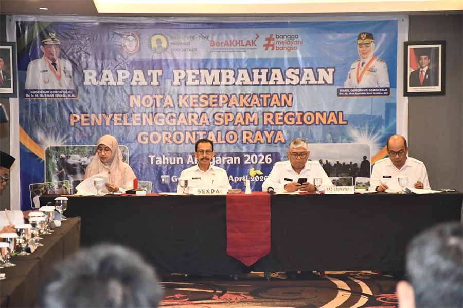 Headline.co.id, Pemerintah Provinsi Gorontalo Melalui Dinas Pekerjaan Umum ~ Penataan Ruang, Perumahan Rakyat, dan Kawasan Permukiman (PUPR-PRKP) sedang mempersiapkan penyelenggaraan Sistem Pelayanan Air Minum (SPAM) Regional Gorontalo Raya. Persiapan ini dimulai dengan rapat pembahasan nota kesepakatan bersama dua pemerintah kabupaten dan satu pemerintah kota yang berlangsung di Kantor Setda Provinsi Gorontalo pada Rabu, 22 April 2026.