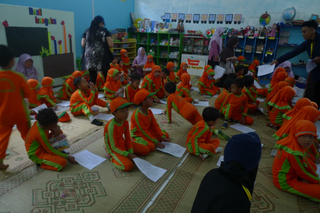 Kegiatan ini diikuti oleh anak-anak usia taman kanak-kanak yang mengenakan pakaian olahraga. Program ini dirancang untuk menanamkan kesadaran lingkungan sejak dini dengan metode pembelajaran yang menyenangkan dan interaktif. Rangkaian kegiatan meliputi edukasi dan sosialisasi pengelolaan sampah, jelajah lingkungan yang menanamkan gaya hidup sehat dan cinta alam, serta aktivitas kreatif berupa mewarnai dan menempel poster bertema lingkungan.