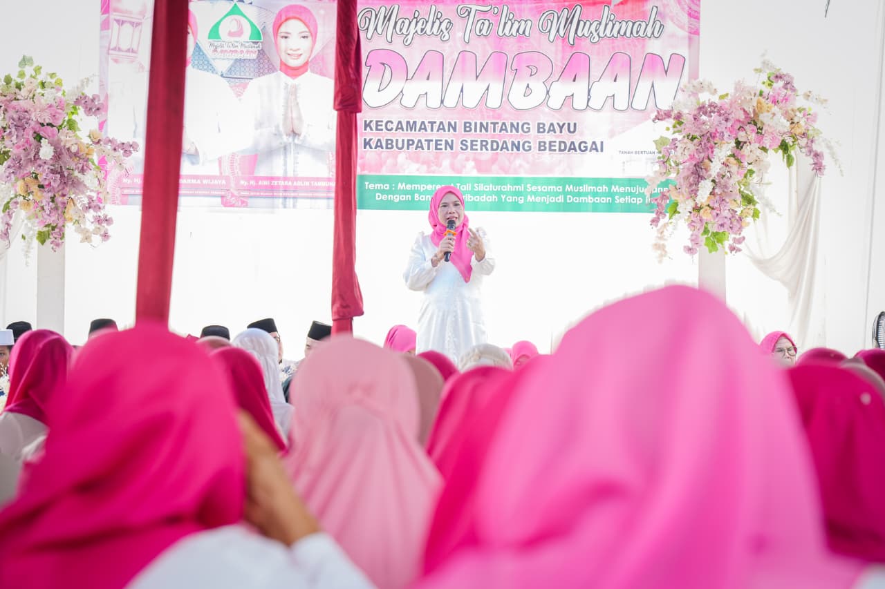 Headline.co.id, Serdang Bedagai ~ Pengajian rutin triwulanan Majelis Ta’lim Muslimah Dambaan (MTMD) Kabupaten Serdang Bedagai (Sergai) dilaksanakan di Lapangan Voli Dusun II Lorut, Desa Huta Durian, Kecamatan Bintang Bayu, pada Selasa (21/4/2026). Acara ini bertepatan dengan peringatan Hari Kartini dan dimaknai sebagai kesempatan refleksi diri bagi kaum ibu. Kegiatan ini dihadiri oleh ratusan jamaah muslimah dan merupakan bagian dari program berkelanjutan Pemerintah Kabupaten Sergai untuk memperkuat ukhuwah Islamiyah serta membangun karakter masyarakat yang religius di Tanah Bertuah Negeri Beradat.