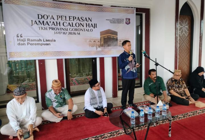 Headline.co.id, Kota Gorontalo ~ Dinas Kesehatan, Pengendalian Penduduk dan Keluarga Berencana (Dinkes P2KB) Provinsi Gorontalo mengadakan acara doa pelepasan bagi jemaah calon haji (JCH) dan tenaga kesehatan haji (TKH) pada Jumat (24/04/2026). Acara ini berlangsung di pelataran Masjid Dinkes P2KB dan bertujuan memberikan dukungan moral dan spiritual kepada Aparatur Sipil Negara (ASN) yang akan menunaikan ibadah haji tahun 1447 H/2026 M.