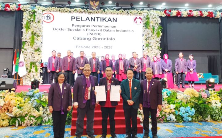 Headline.co.id, Kota Gorontalo ~ Pada Sabtu (25/4/2026), Ketua Umum Pengurus Pusat Perhimpunan Dokter Spesialis Penyakit Dalam Indonesia (PAPDI), Eka Ginanjar, melantik kepengurusan baru PAPDI Cabang Gorontalo untuk periode 2025–2028. Pelantikan ini menandai dimulainya kepemimpinan baru di bawah dr. Taufik Ramadhan Biya, yang diharapkan dapat menjadi pilar utama dalam pembangunan kesehatan dan memperkuat sinergi dengan pemerintah daerah untuk menangani berbagai kondisi darurat kesehatan.